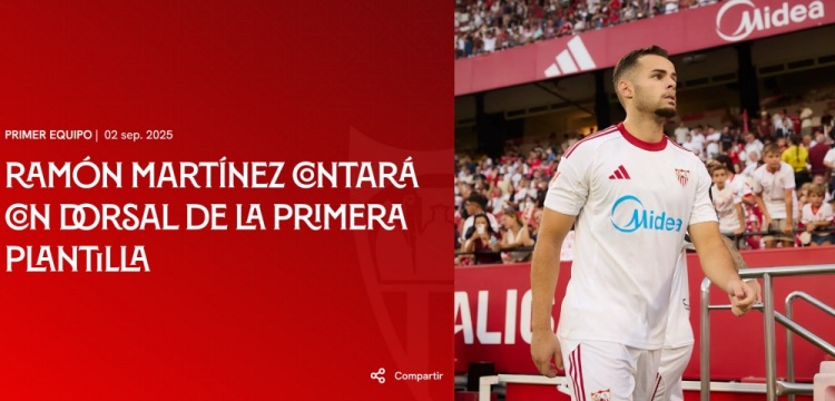 9月2日訊 塞維利亞官方宣布,隊(duì)內(nèi)中衛(wèi)拉蒙-馬丁內(nèi)斯將獲得一線隊(duì)號(hào)碼。
