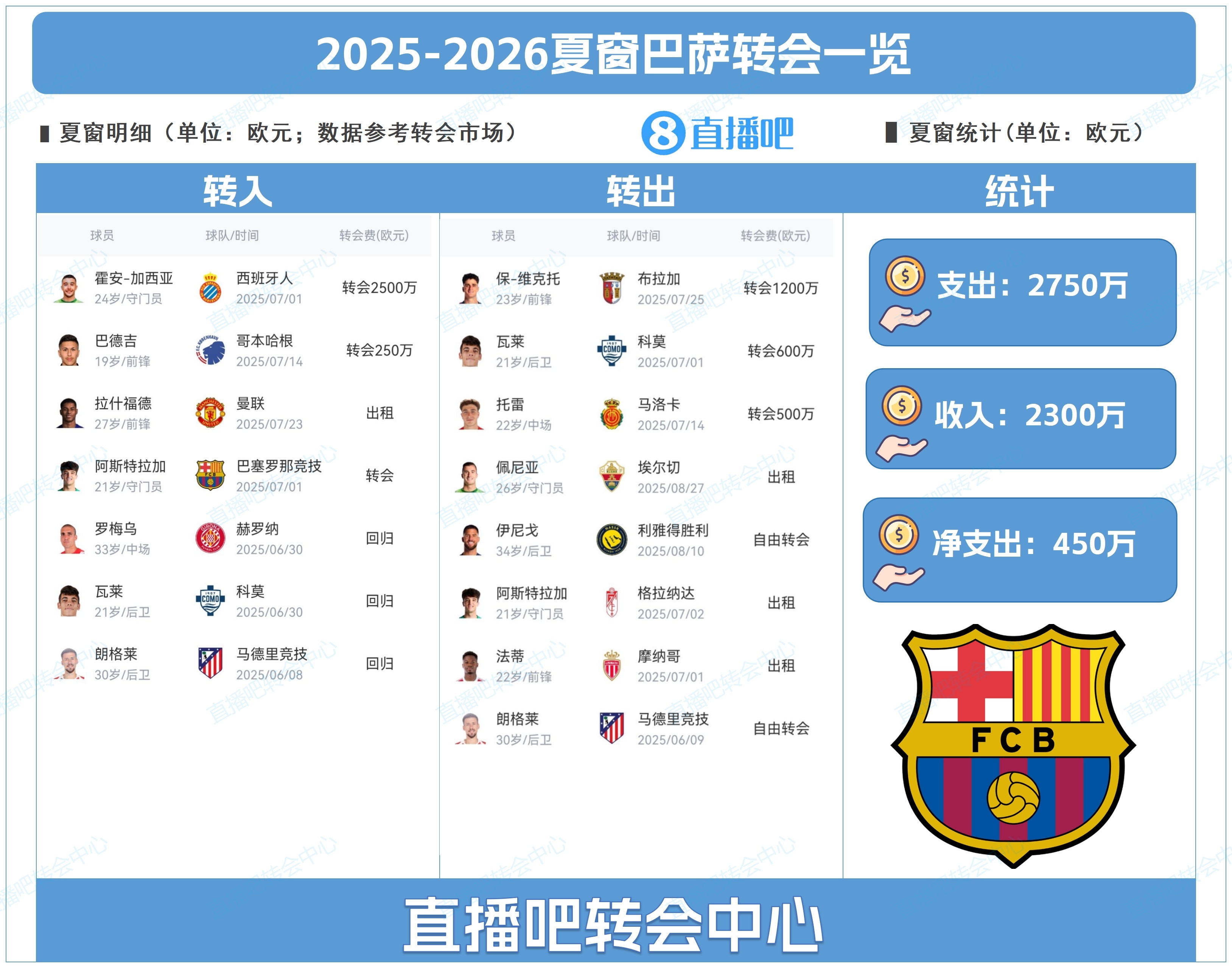 為吧友們總結(jié)了巴塞羅那今夏的轉(zhuǎn)會(huì)操作,吧友們能打幾分?