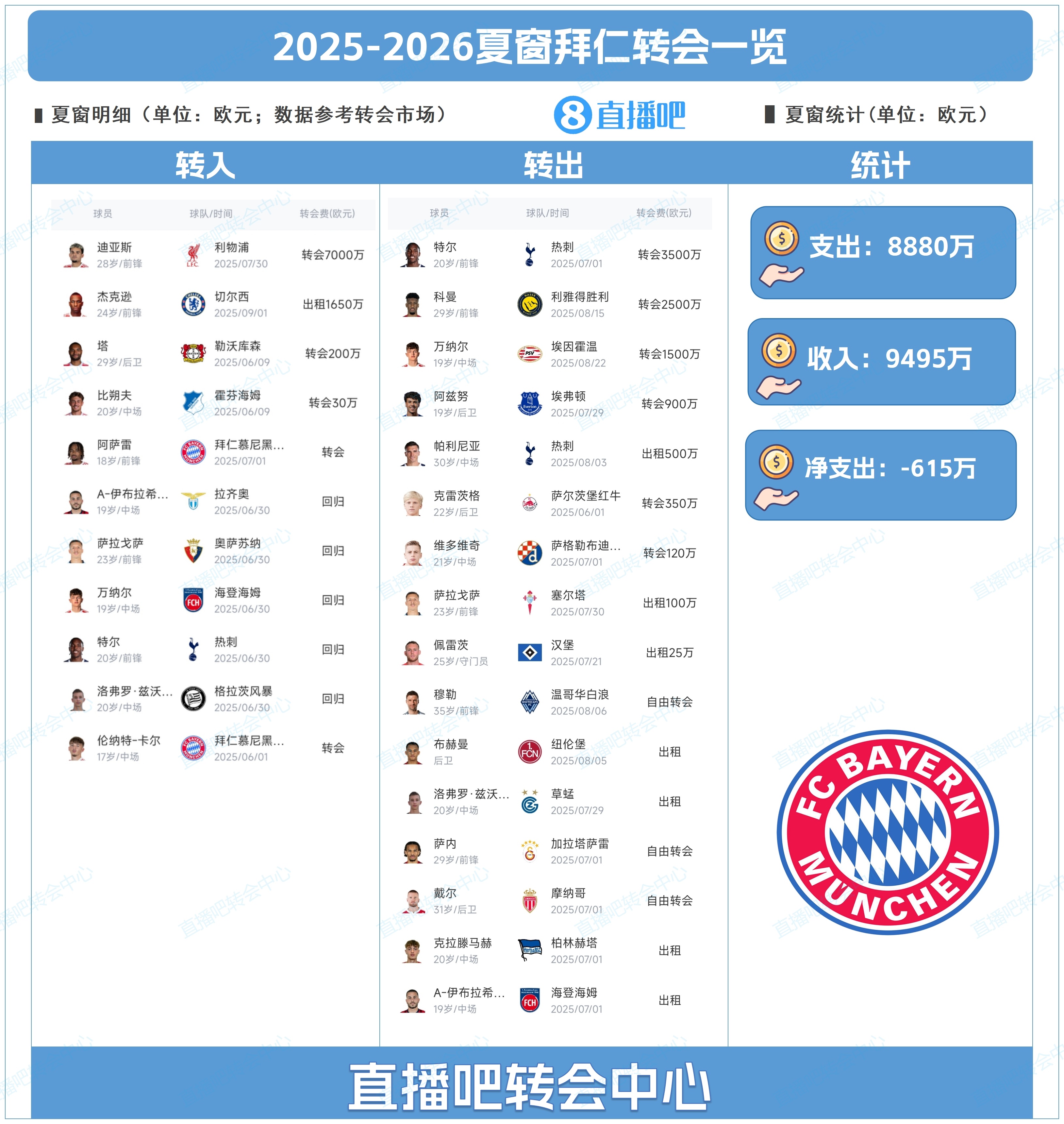 為吧友們總結(jié)了拜仁今夏的轉(zhuǎn)會操作,吧友們能打幾分?