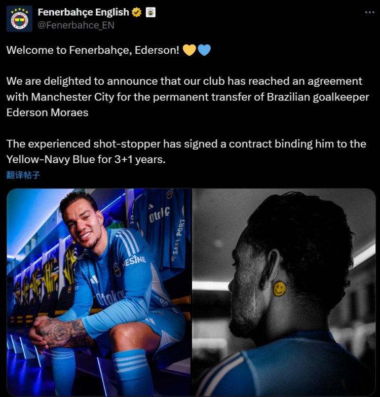 費(fèi)內(nèi)巴切官推表示:“歡迎來到費(fèi)內(nèi)巴切,埃德森!????”