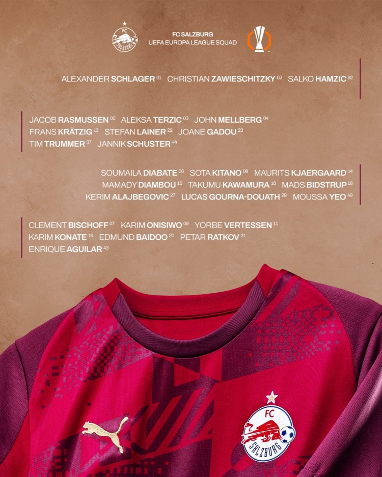 薩爾茨堡歐聯(lián)杯名單:
