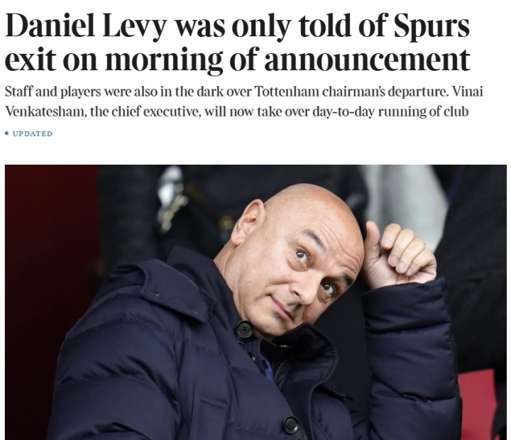 報道稱,這位63歲的熱刺主席在得知自己將卸任時感到震驚,他于本周四上午首次得知這一消息,而他在周五原定還有會議安排。
