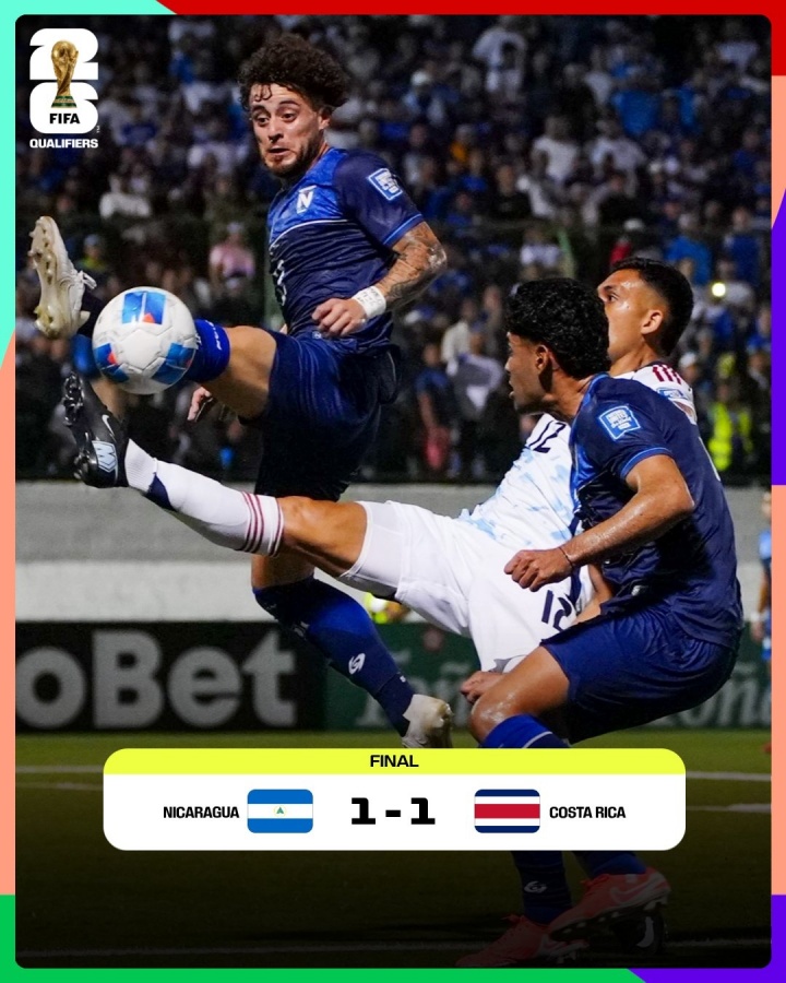 09月06日訊 中北美及加勒比海世預(yù)賽第三階段首輪,哥斯達黎加(FIFA排名第40)被少一人作戰(zhàn)的尼加拉瓜(FIFA第130)1-1逼平。