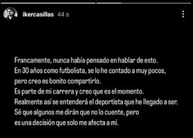 卡西利亞斯表示:“我從未想過要談?wù)摯耸?。在?0年的球員生涯中,我很少談?wù)?,只有極少人知道此事,但我認(rèn)為現(xiàn)在是時候公開這個了。這是我職業(yè)生涯的一部分,這能讓人們更好地理解我所成為的球員。我知道有些人會勸我不要說出來,但這是一個只影響到我個人的決定?!?/p>