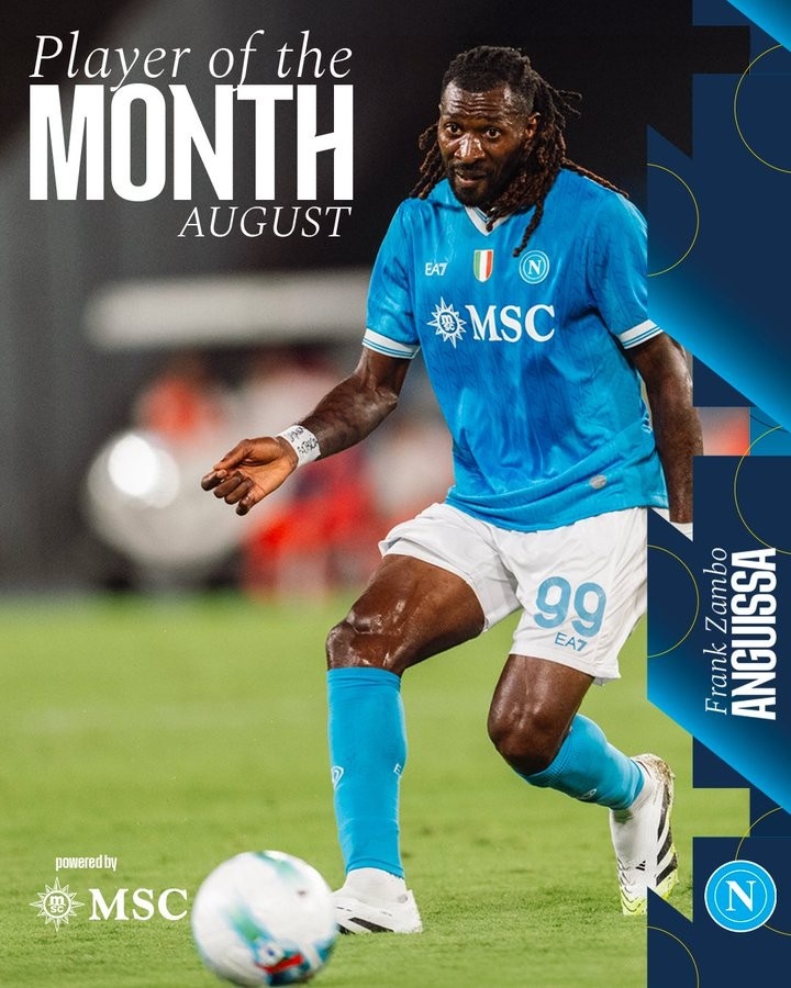9月8日訊 那不勒斯官方消息,球隊(duì)中場安古伊薩當(dāng)選隊(duì)內(nèi)8月最佳球員。