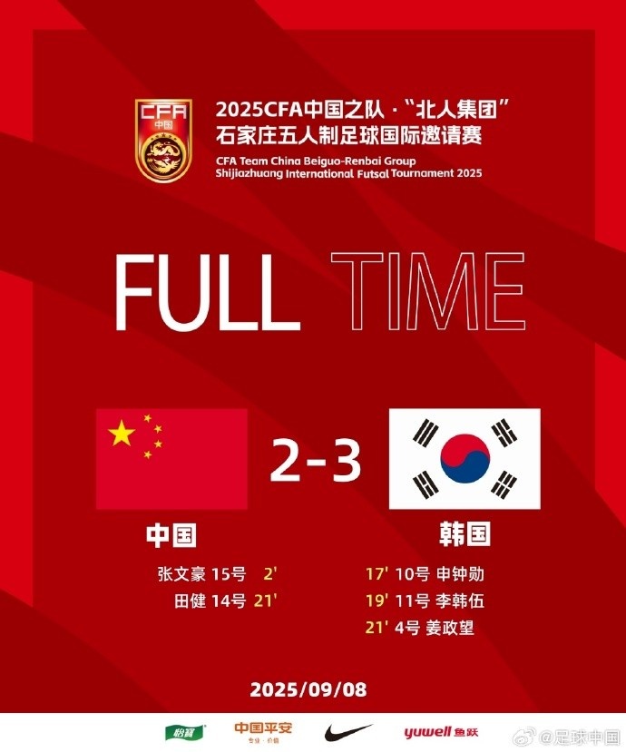 2025CFA中國之隊·“北人集團”石家莊五人制足球國際邀請賽再戰(zhàn)一場,中國隊2比3負于韓國隊。 ???
