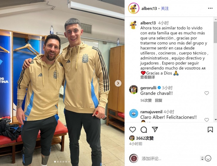 9月9日訊 皇馬16歲門將卡斯特勞隨阿根廷國家隊(duì)訓(xùn)練,他在社交媒體上曬出與梅西的合照。