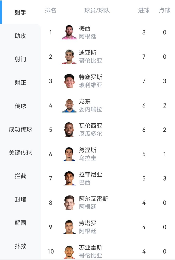 球員方面,梅西以8球榮獲南美世預(yù)賽射手王,J羅則是助攻王。