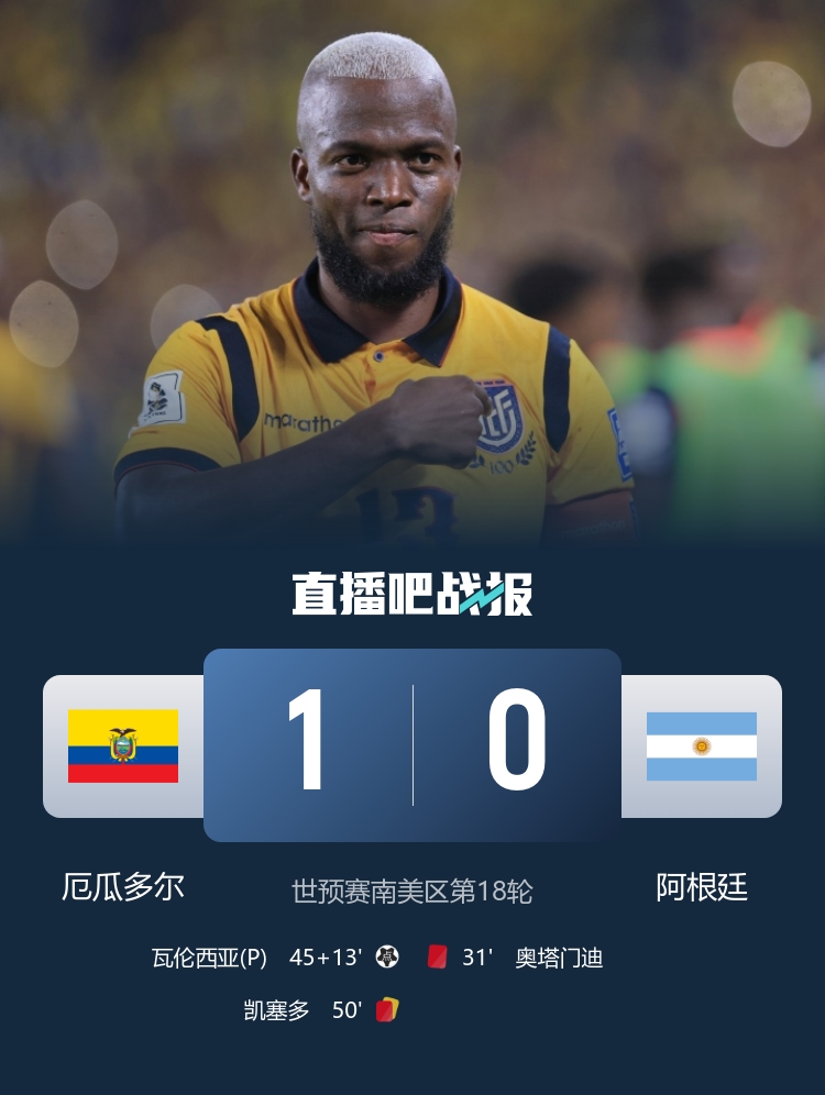 9月10日訊 世預(yù)賽南美區(qū)第18輪,十人阿根廷客場0-1不敵十人厄瓜多爾。據(jù)阿根廷媒體TyC報道,因為本場失利阿根廷將在最新一期世界排名丟掉世界第一的位置。