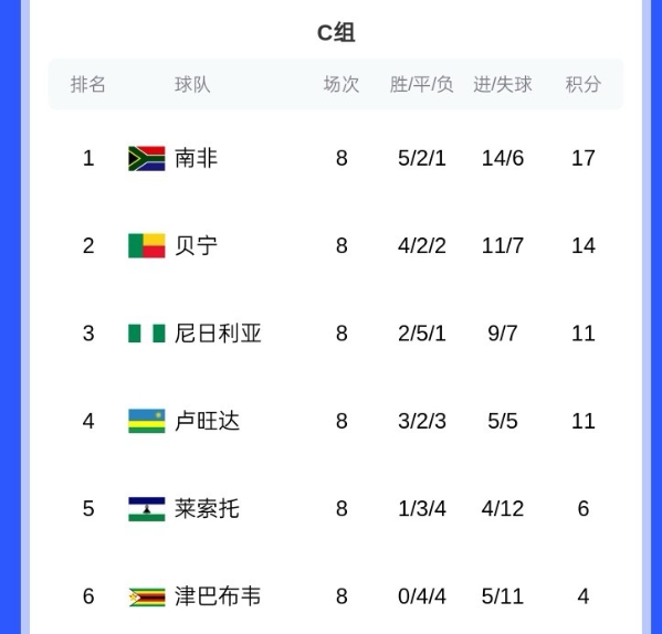 8輪過后,尼日利亞2勝5平1負(fù)排在小組第三,進(jìn)世界杯形勢艱難。