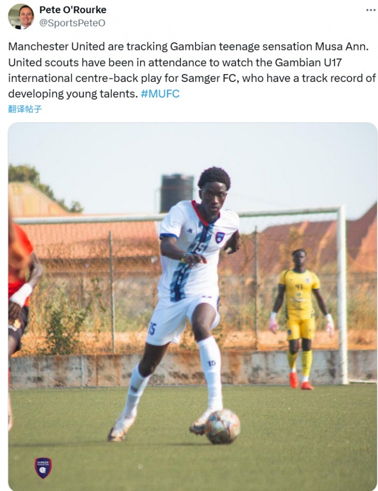 報道稱曼聯(lián)球探在現(xiàn)場考察了這名岡比亞U17國腳中衛(wèi),該球員目前效力于以培養(yǎng)年輕才俊著稱的薩姆格爾足球俱樂部。