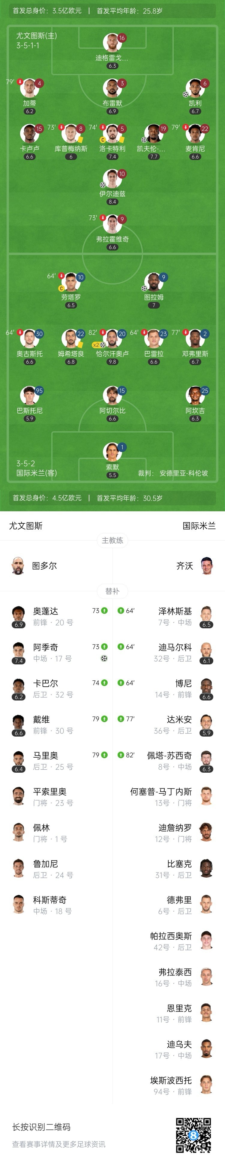國米方面,全隊首發(fā)平均30.5歲,基本都是老將。進球的馬庫斯-圖拉姆28歲,恰爾汗奧盧31歲。