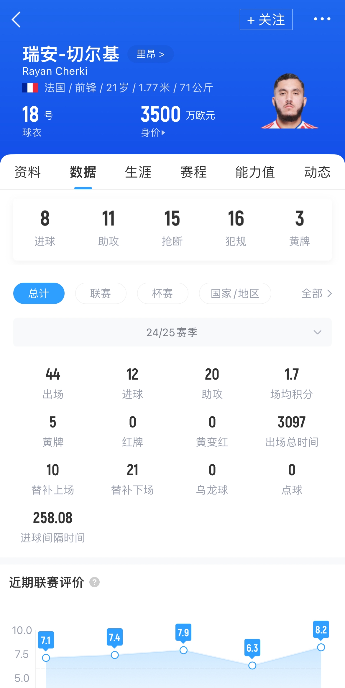 本賽季切爾基為里昂各項(xiàng)賽事累計(jì)出場(chǎng)44場(chǎng),取得了12粒進(jìn)球以及20次助攻,目前其德轉(zhuǎn)身價(jià)為3500萬歐元。