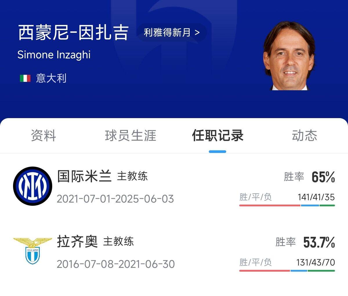 小因扎吉現(xiàn)年49歲,意大利籍教練,他于2021年夏天成為國(guó)米主帥,帶隊(duì)至今小因扎吉帶領(lǐng)球隊(duì)贏得1座意甲、兩個(gè)意大利杯、三個(gè)意大利超級(jí)杯。
