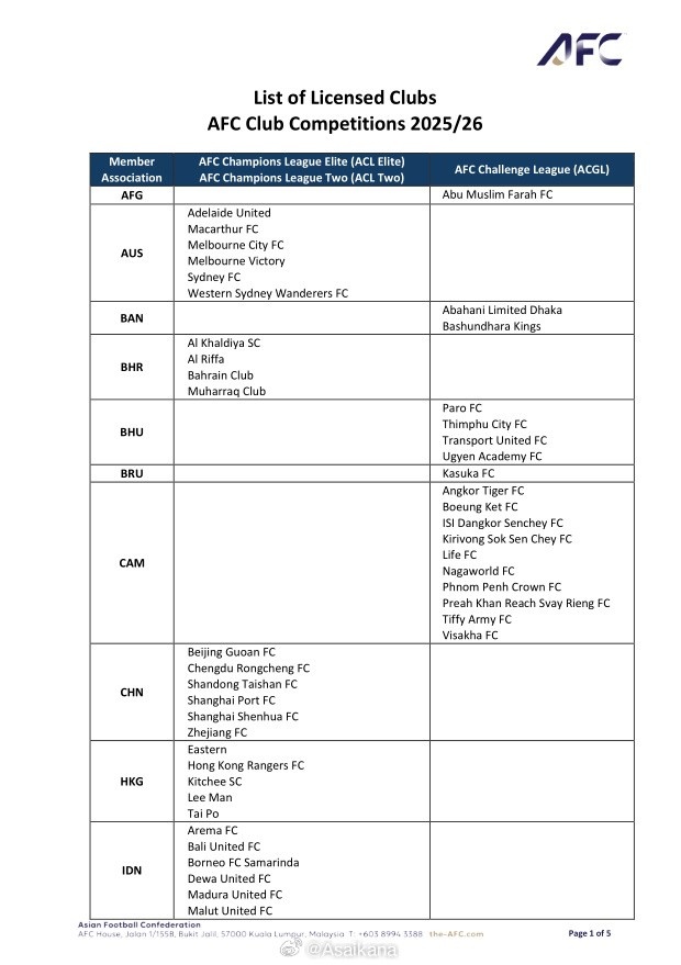 亞足聯(lián)公布了2025-26賽季亞足聯(lián)俱樂部賽事準(zhǔn)入結(jié)果。申請準(zhǔn)入牌照的6支中超球隊(duì)北京國安、成都蓉城、山東泰山、上海海港、上海申花、浙江全數(shù)通過。同時(shí),其他已達(dá)到亞冠精英聯(lián)賽競技成績要求的各國俱樂部也都順利通過了準(zhǔn)入,這意味著下半年開始的新賽季亞冠精英聯(lián)賽東亞12強(qiáng)已經(jīng)基本確定: