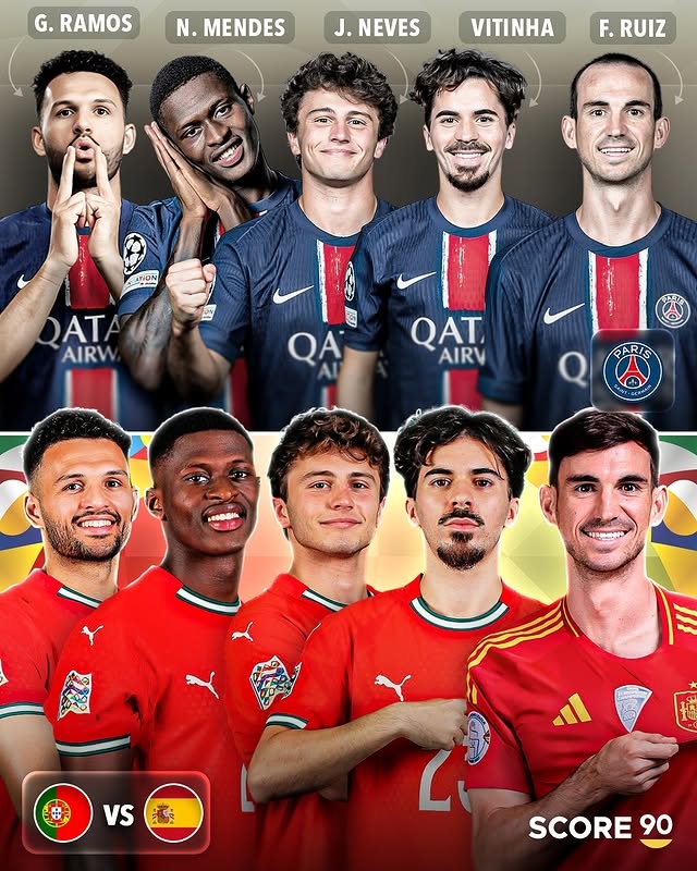 巴黎:貢薩洛-拉莫斯(葡萄牙)、努諾-門德斯(葡萄牙)、若奧-內(nèi)維斯(葡萄牙)、維蒂尼亞(葡萄牙)、法比安-魯伊斯(西班牙)