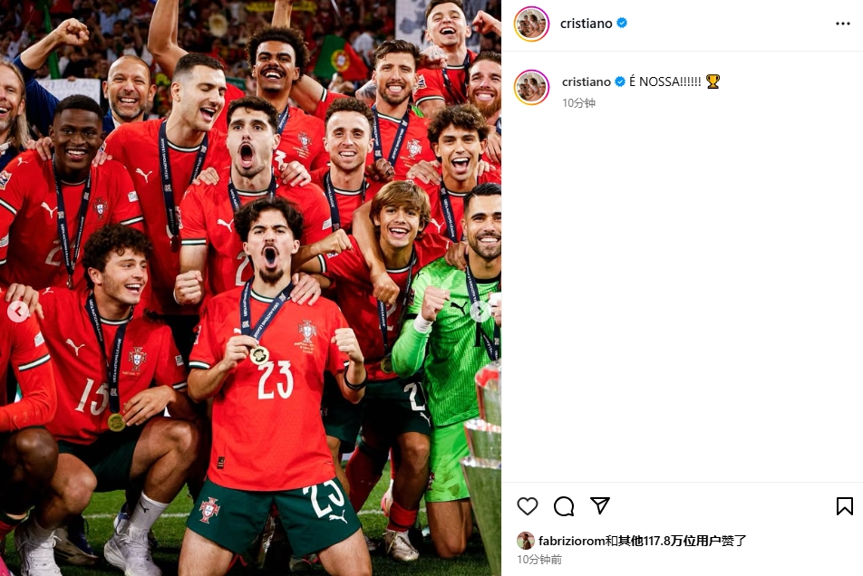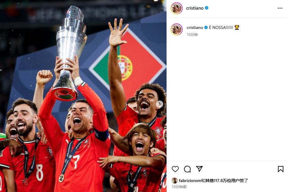 十分鐘不到100多萬點贊!C羅社媒發(fā)文:??是我們的?。。。。?/li>