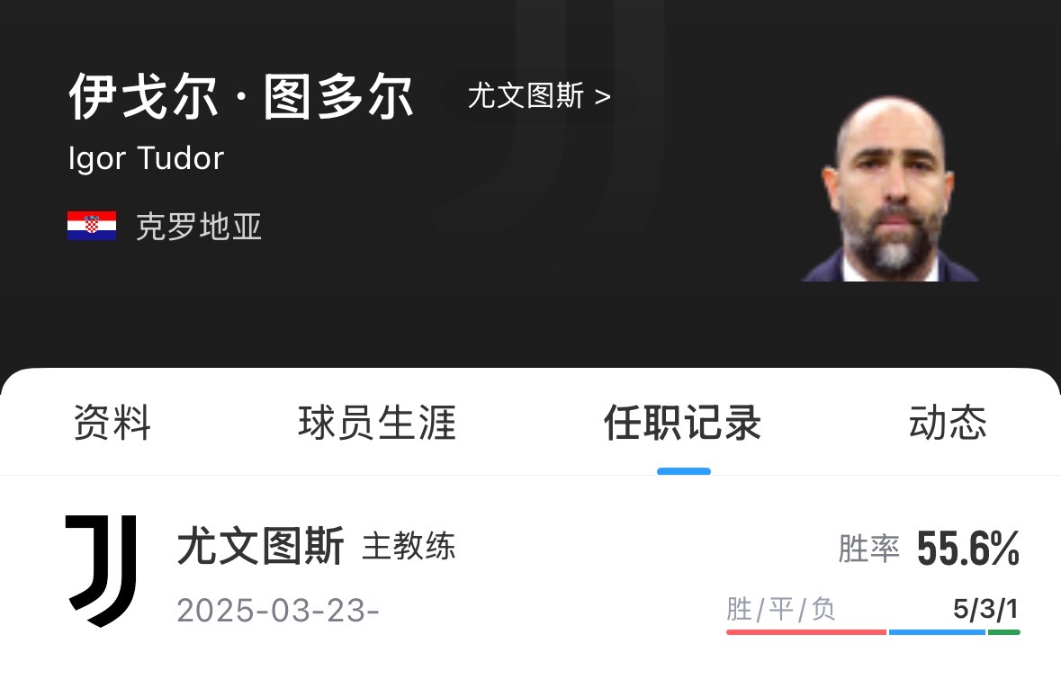 圖多爾現(xiàn)年47歲,克羅地亞教練,球員時(shí)期在1998年至2007年曾效力尤文,隨隊(duì)獲得了兩次意甲冠軍、兩次意大利超級杯冠軍以及一座意乙冠軍獎杯。在皮爾洛執(zhí)教尤文期間,圖多爾還曾擔(dān)任助教。