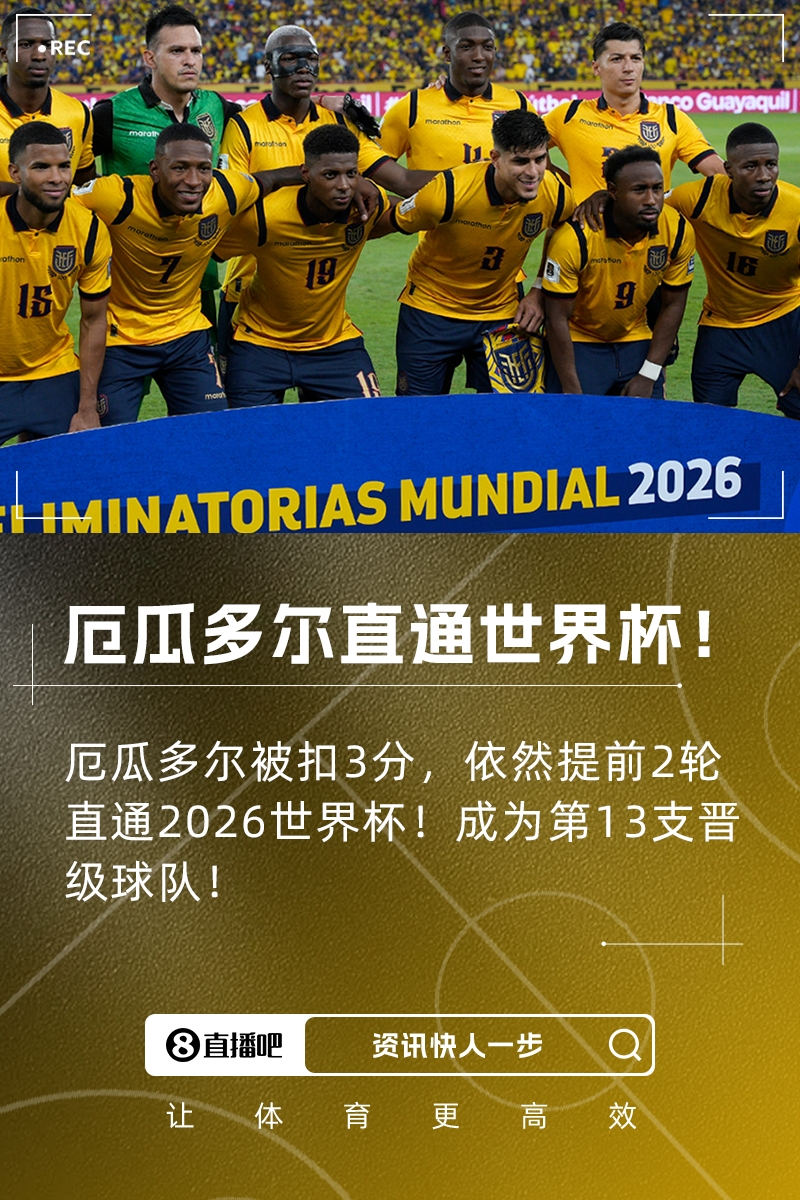 06月11日訊 2026世界杯預(yù)選賽南美區(qū)第16輪,秘魯0-0厄瓜多爾。厄瓜多爾提前兩輪直通世界杯!成為南美第三支晉級隊(duì)伍。