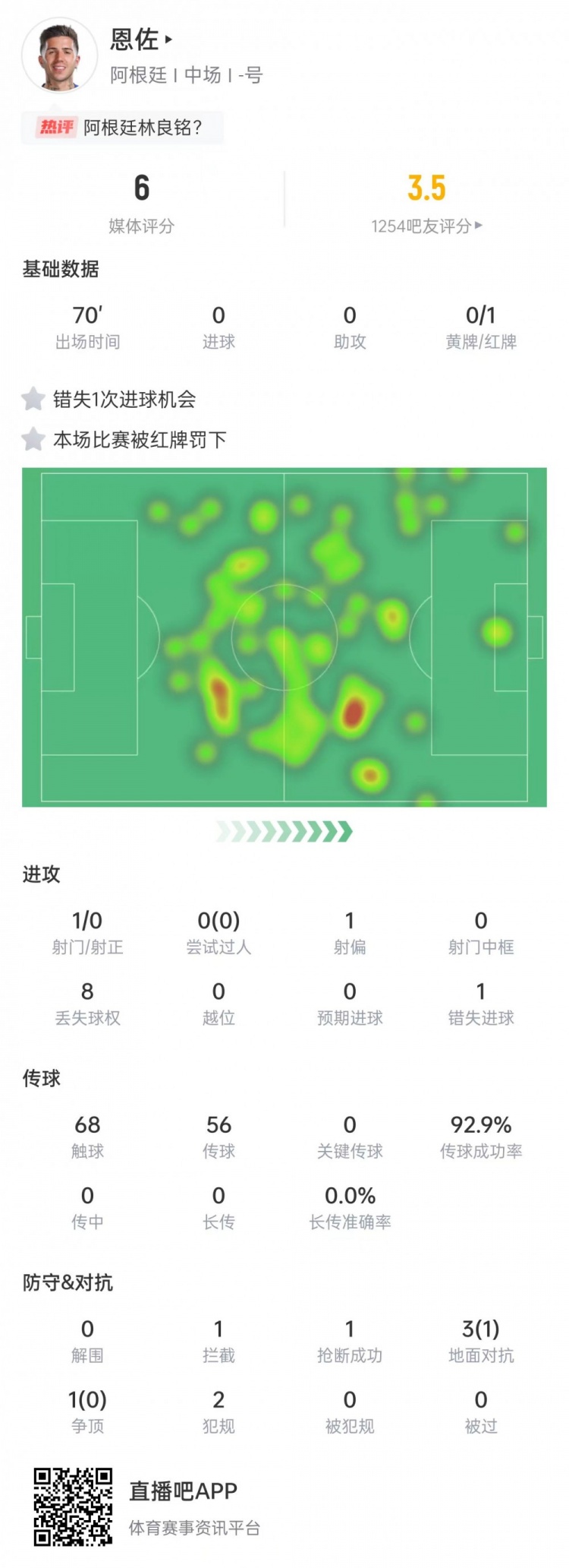 恩佐本場(chǎng)比賽數(shù)據(jù):