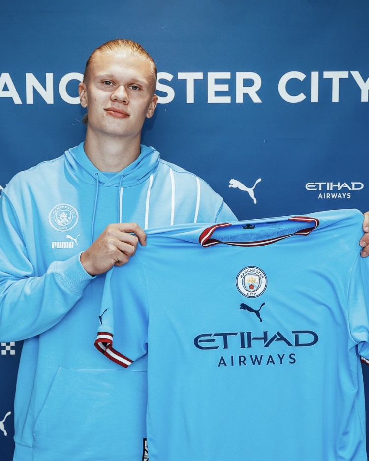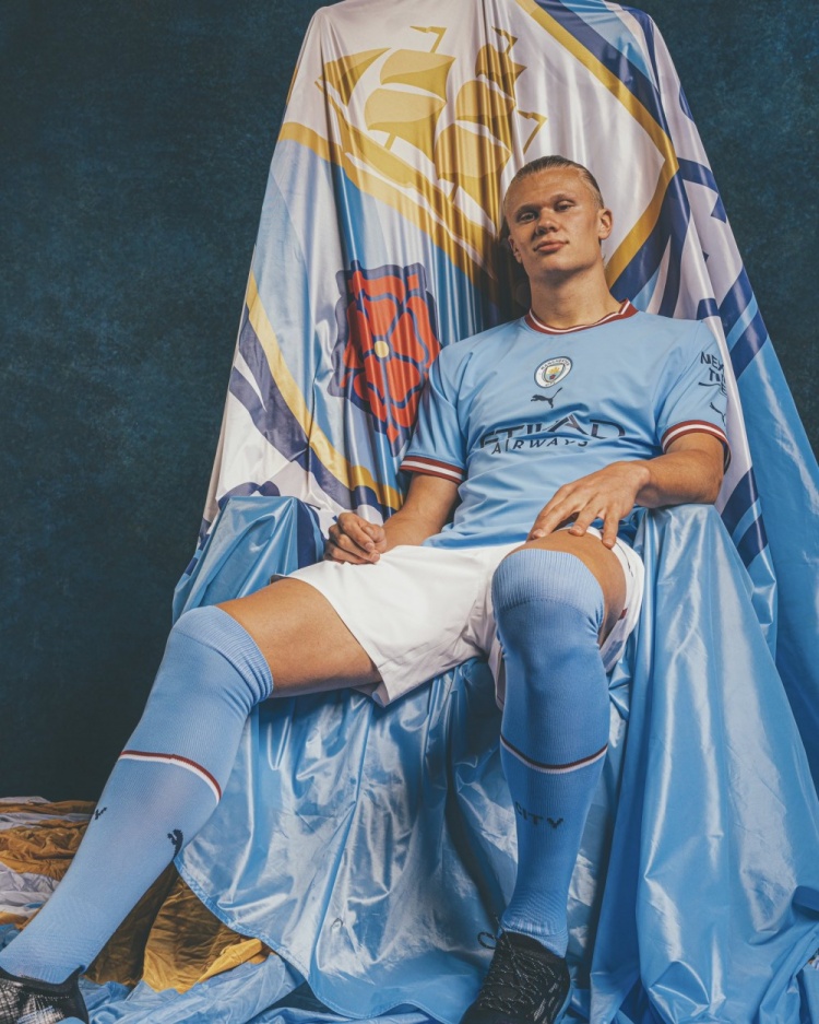 曼城曬出了哈蘭德當(dāng)初的加盟照,寫道:“2022年的今天,我們簽下了從小就是藍(lán)月亮球迷的哈蘭德?!?/p>