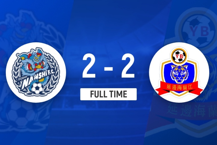 下半場補時5分鐘,佛山龍獅2-2延邊龍鼎。