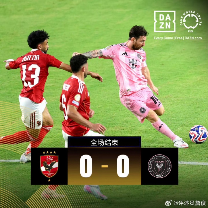 06月15日訊 世俱杯揭幕戰(zhàn),邁阿密國際0-0戰(zhàn)平開羅國民。賽后解說詹俊發(fā)文。
