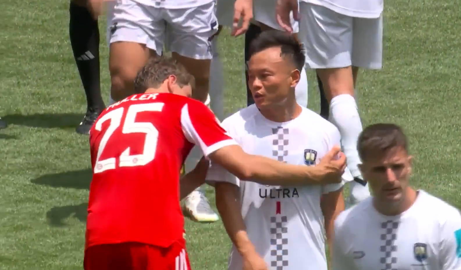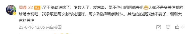 賽后,穆勒看了一眼周通身后的號碼,兩人簡單打了招呼。對此周通再次進行了回應。