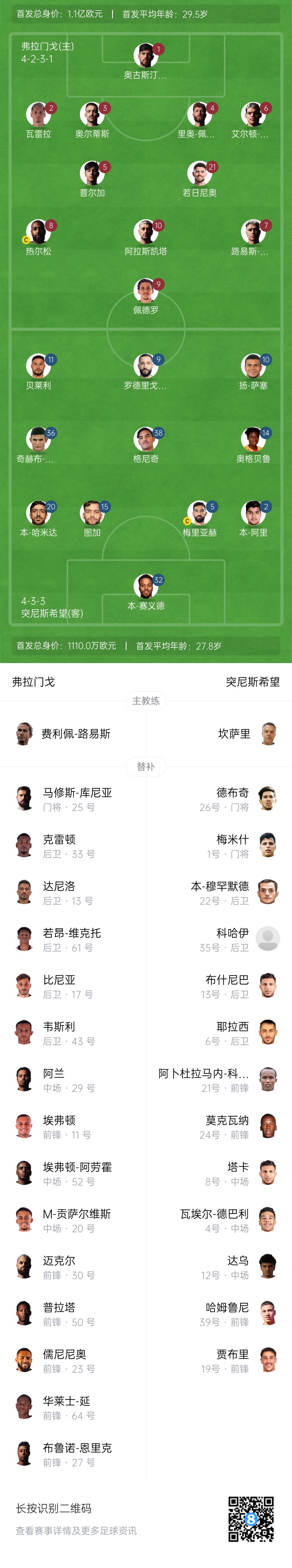 弗拉門戈替補(bǔ):25-馬修斯-庫尼亞、13-達(dá)尼洛、17-比尼亞、33-克萊頓、43-韋斯利、61-若昂-維克托、20-馬特烏斯-貢薩爾維斯、29-阿蘭、52-埃弗頓-阿勞霍、11-埃弗頓、23-儒尼尼奧、27-布魯諾-恩里克、30-邁克爾、50-普拉塔、64-華萊士-延