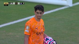 第40分鐘,阿森西奧禁區(qū)內(nèi)玩火被萊昂納多斷球后背后拉人犯規(guī),主裁果斷判罰點(diǎn)球,內(nèi)維斯點(diǎn)射命中,比分改寫為1-1↓