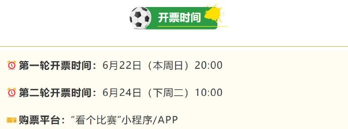 本輪賽事實行實名制身份證件核驗入場,觀眾憑本人身份證原件,于6月29日17:00開始檢票,19:00正式開賽(具體以現(xiàn)場實際為準)。