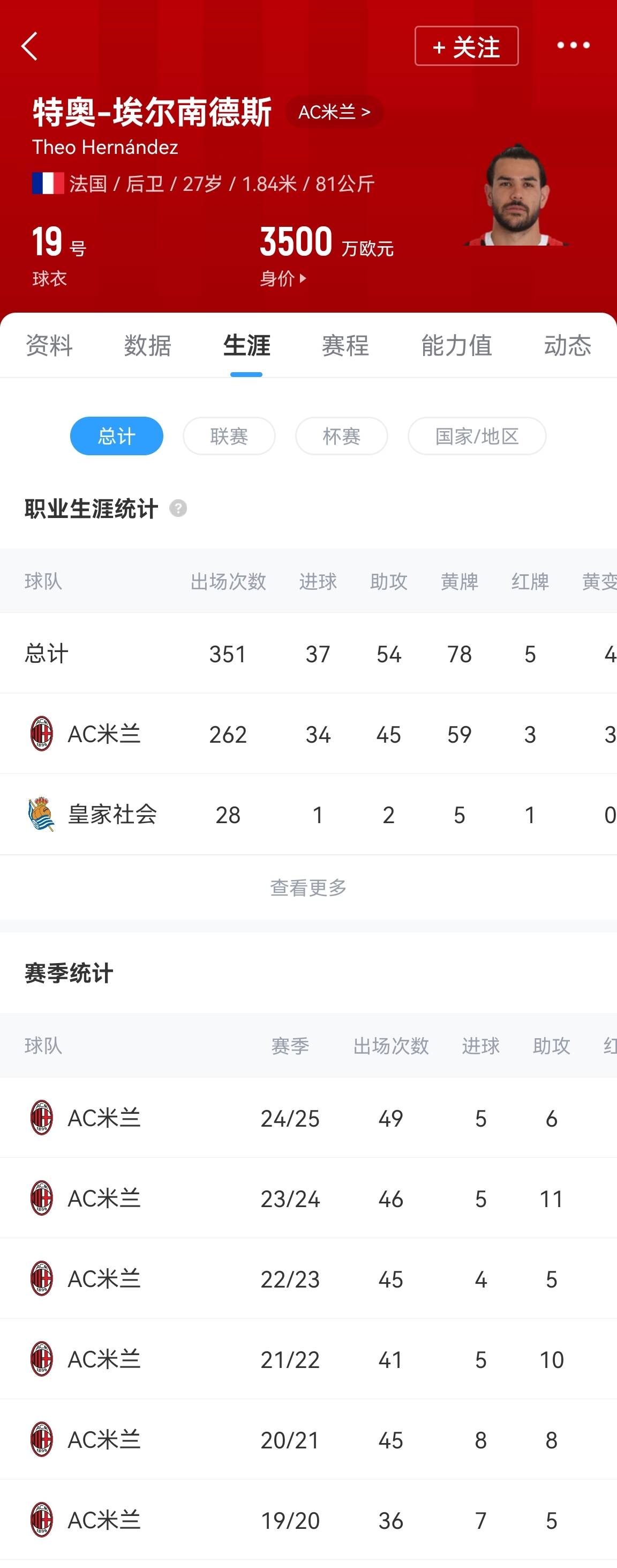 特奧現(xiàn)年27歲,他與AC米蘭的合同明年到期。上賽季特奧代表AC米蘭出戰(zhàn)49場比賽,貢獻5球6助攻。這位法國國腳目前德轉(zhuǎn)身價3500萬歐。