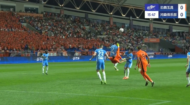 06月26日訊 玉昆vs河南第16分鐘,韓子龍嘗試倒鉤射門,正好蹭到頭球解圍的劉易鑫!劉易鑫接受治療,韓子龍吃到黃牌一張。