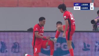 19歲李新翔傳射,加布里埃爾助攻!第45+1分鐘,加布里埃爾突破下底倒三角回敲,李新翔包抄鏟射破門,上海海港2-0大連英博!↓