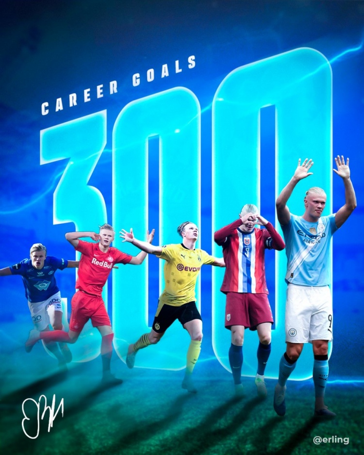 剛剛,哈蘭德更新社交媒體曬出個(gè)人海報(bào)紀(jì)念這一里程碑。