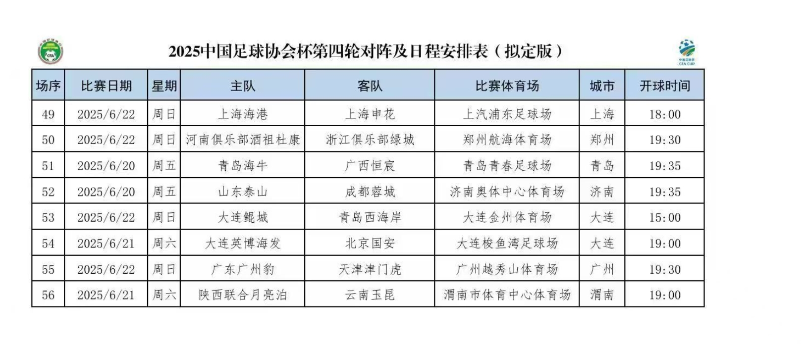 足協(xié)杯1/8決賽賽程擬定版