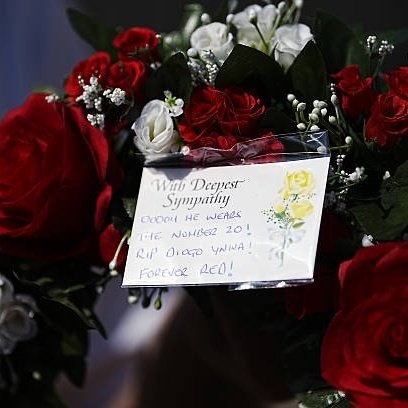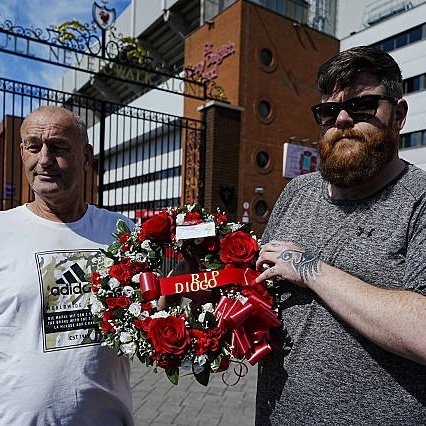 已經(jīng)有利物浦球迷來到安菲爾德球場,為若塔獻花,表達哀悼之情。
