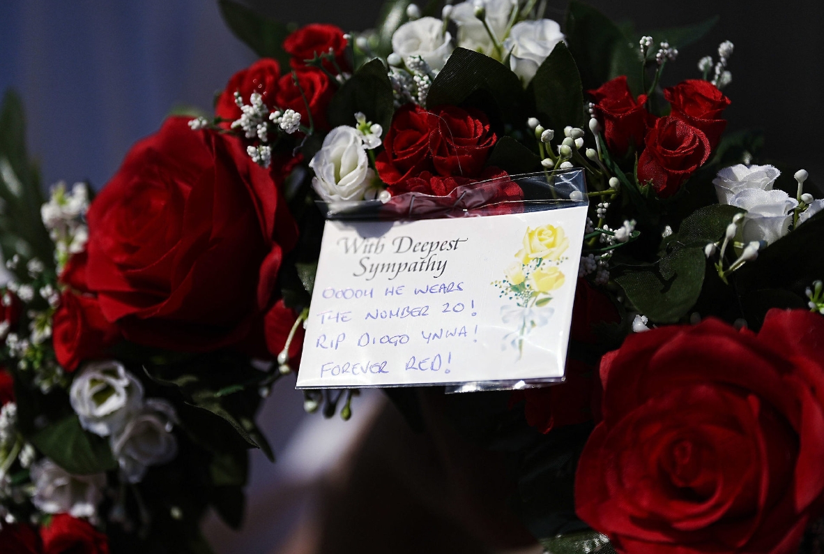 球迷已經(jīng)在安菲爾德球場(chǎng)外悼念若塔,利物浦隊(duì)旗降半旗致哀。