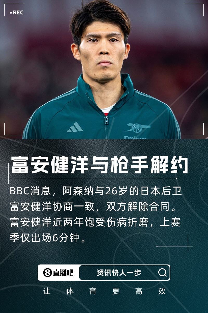 富安健洋今年二月接受了手術(shù),目前仍需休養(yǎng)五個月才能康復(fù)。他與阿森納的現(xiàn)有合約將于下賽季末到期,但BBC獲悉,阿森納和富安健洋已經(jīng)達成協(xié)議,提前終止他的合約。