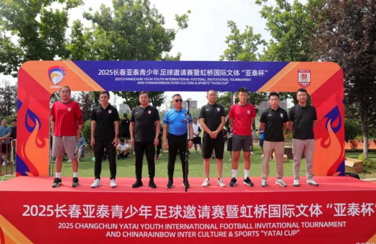 長春市足協(xié)秘書長聶玉江、長春亞泰足球俱樂部總經(jīng)理曾皎峰、亞泰青訓(xùn)總監(jiān)張笑飛、一線隊球員譚龍和吳亞軻,以及虹橋文體發(fā)展(北京)有限公司總經(jīng)理董澤石、長春嘉壹體育文化發(fā)展有限公司副總經(jīng)理馬志一起為賽事開球。