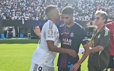 老隊(duì)友了!姆巴佩賽后和巴黎前隊(duì)友阿什拉夫、G-拉莫斯等人擁抱