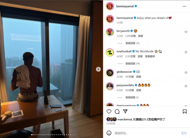 亞馬爾參加贊助商活動(dòng),開啟首次中國行,他在社交媒體上曬出多張照片,配文:“享受你的夢想。”
