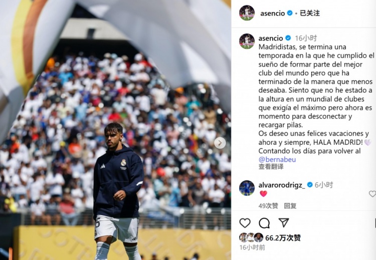 阿森西奧寫道:“親愛的皇馬球迷們, 隨著這個(gè)賽季的結(jié)束,我實(shí)現(xiàn)了加入世界上最好俱樂部的夢(mèng)想。然而,這個(gè)賽季以我最不希望的方式結(jié)束了。”