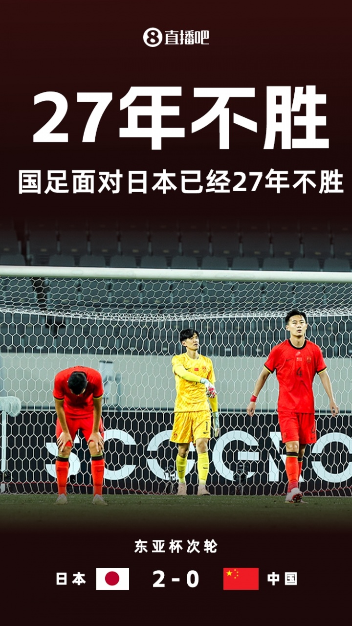 自1998年3月的戴拿斯杯(東亞杯前身)國足2-0日本以來,中國男足已經(jīng)17場不勝日本,期間總戰(zhàn)績?yōu)?平11負(fù)。