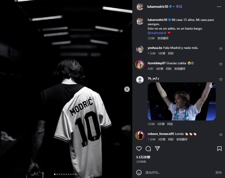 莫德里奇曬出背影照片,配文:13年了,這是我永遠(yuǎn)的家。這不是再見(jiàn),這是后會(huì)有期。