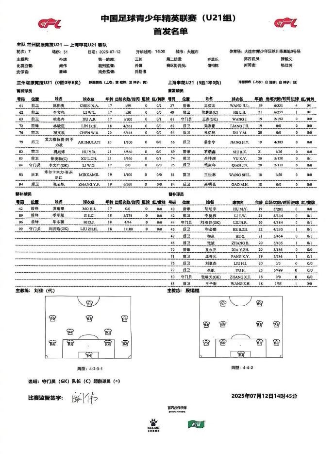 中國足球青少年精英聯(lián)賽第7輪,上海申花10-0戰(zhàn)勝蘭州隴原競技