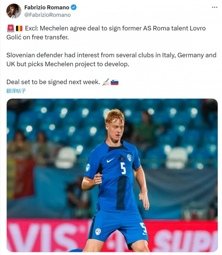 19歲中衛(wèi)戈利奇今夏離開羅馬,成為自由球員,羅馬諾透露,梅赫倫已與戈利奇就免簽事宜達(dá)成協(xié)議,這位斯洛文尼亞球員受到意大利、德國和英格蘭多家俱樂部的關(guān)注,但他選擇加盟梅赫倫,將在下周簽署合同。