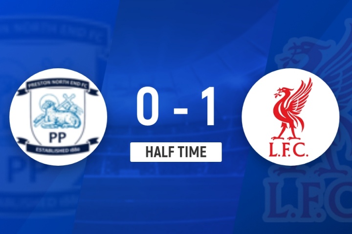 上半場(chǎng)補(bǔ)時(shí)2分鐘,普雷斯頓0-1利物浦。