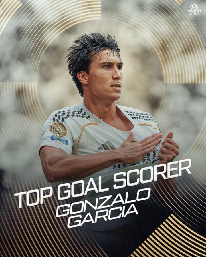 皇馬官網(wǎng)寫道:“貢薩洛-加西亞榮獲世俱杯最佳射手獎,這位皇馬前鋒打入4粒進(jìn)球,與迪馬利亞(本菲卡)、吉拉西(多特蒙德)和馬科斯-萊昂納多(利雅得新月)并列射手榜首位。但他憑借多出1次助攻的優(yōu)勢成功打破平局,將這一獎項收入囊中。”