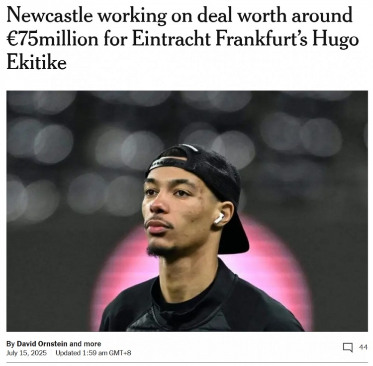 7月15日訊 TA記者奧恩斯坦的報道,紐卡正致力于從法蘭克福簽下前鋒?;倏?,這筆交易價值約為7500萬歐。